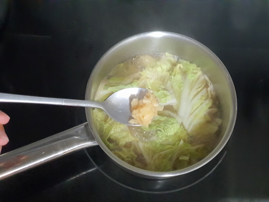 다진마늘도 넣고 보글보글 끓이다 배추가