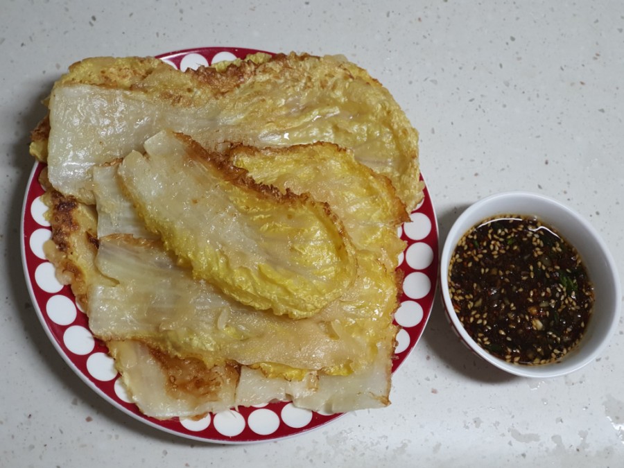 반죽에 간장 반스푼 정도 넣으면따로 간 안해도 맛있어요 .:)배추 흰부분은