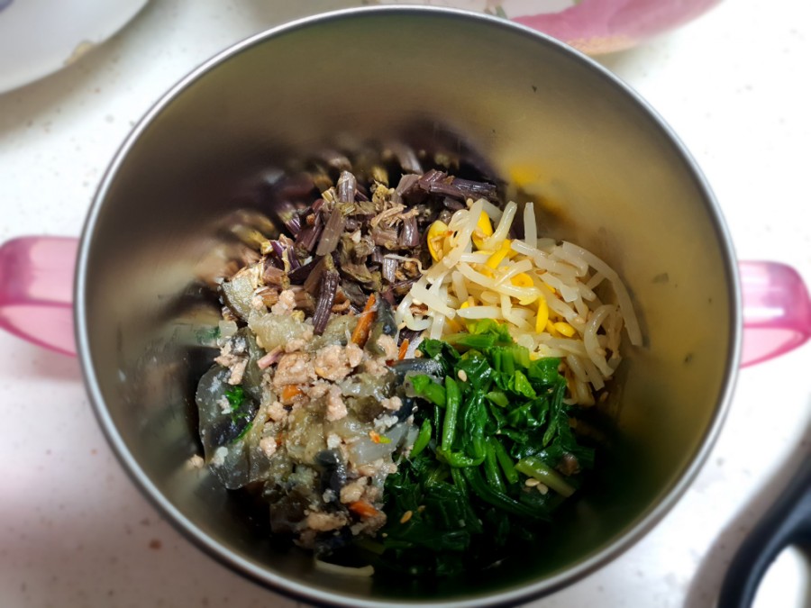 오늘비빔밥으로 먹을 재료들 다양하죠 ? ㅎㅎ